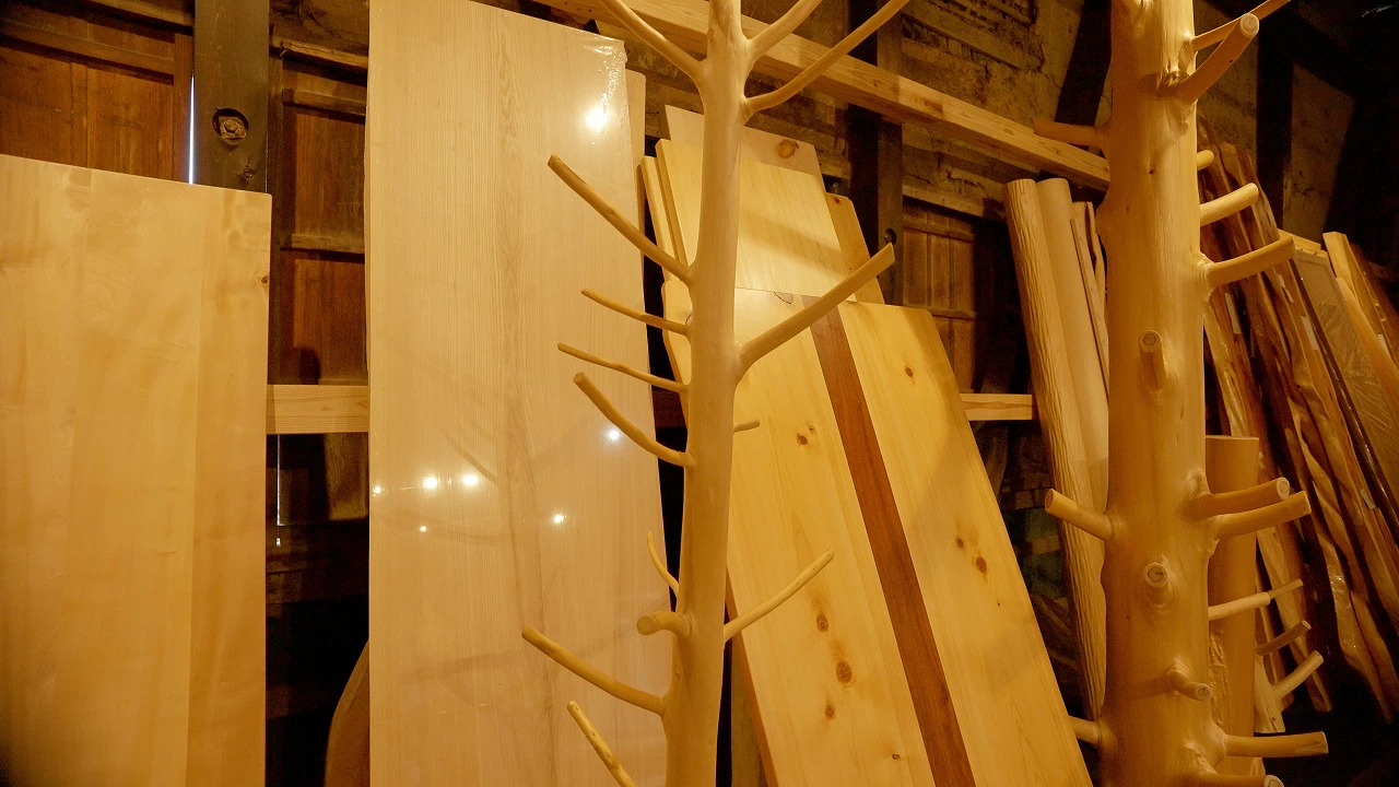 「森と暮らしを繋ぐ」をコンセプトに、模様も、香りも、枝も、曲がりも、割れもオンリーワンの木の個性を活かした”ものづくり”を行う≪MORITO≫。自然の力を内に秘めた”磨き丸太”の魅力を伝えたいという想いと丁寧な仕事が、人と共に生きる道具を生み出します。