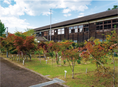 旧宇太小学校跡地に世界のカエデ1,200種3,000本を、木造校舎やcafé、図書館もあります。
